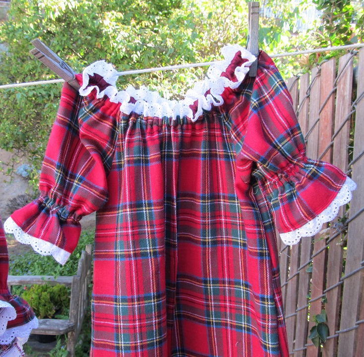 The nightgowns are made out of a nice 100% cotton flannel shown in red.
